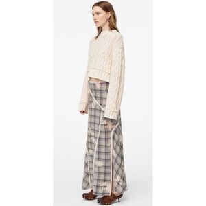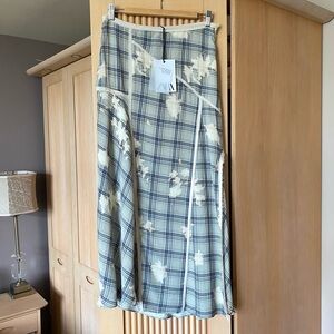 Zara limited edition bohemian plaid maxi skirt with contrasting trim details! New with tags, raw fringe trims are part of the design! Made from a flowy chiffon fabric, has side slit! Hidden zip closure! Design reminds me of free people and magnolia pearl!!