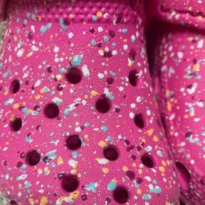 Brighten up your child's day with these fun pink Crocs featuring playful multicolor speckles. Perfect for everyday adventures.