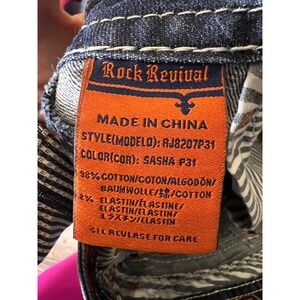Keywords: Rock Revival Jeans, Sasha Capri, Bootcut Jeans, Embellished Denim, Designer Jeans, Stretch Denim, Distressed Jeans, Western Style, Rodeo Style, Fashionable Denim, Trendy Jeans, Casual Chic, Evening Wear