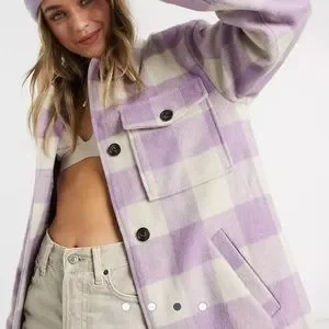 Long Line Shacket from ASOS. All over Lilac and Cream Check Design