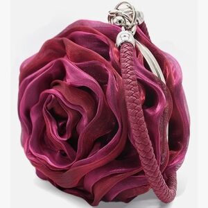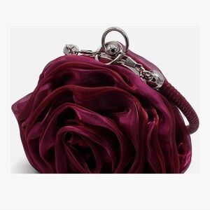 Rose Shaped Evening Bag Soft Satin Clutch Purse Floral Wristlet Handbag