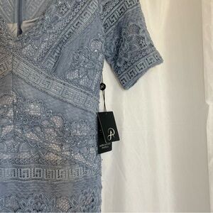 ADRIANNA PAPELL Women’s Blue Lace Beaded Full Length Formal Dress Size Small