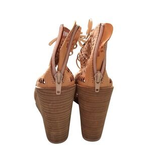 Jeffrey Campbell Lace Up Wedge Sandals 8.5‎ Tan Neutral Boho Booties Boots