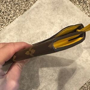Elegant Authentic Louis Vuitton wallet in classic brown monogram. Perfect for adding a touch of luxury to any outfit. Bought in pre-loved condition. Some small signs of usage. See all pics. Will included unbranded chain to make a little crossbody. Over-all in good condition. Does have a monogrammed M on inside of flap.
