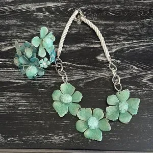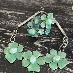 Sea blue & green matching necklace and bracelet set. Bought at an art show. No defects. Worn a couple times.