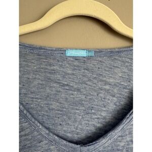 J McLaughlin T Shirt Women Size M Blue Linen Stretch V Neck Raw Rolled Hem Top