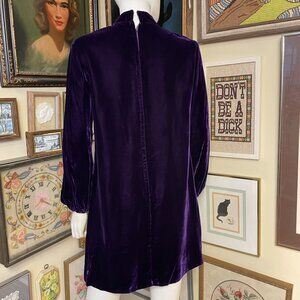 70s Vintage Purple Velvet Mini Dress with Smocked Yoke & Puff Sleeves Size 13