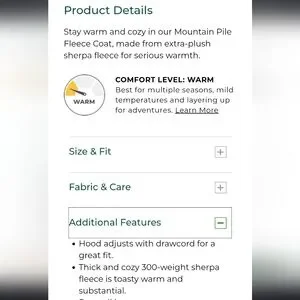 L.L. Bean Women's Cream Mountain Pile Fleece Coat 2X