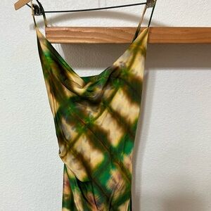 Zara Satin Effect Asymmetrical Satin Dress Size Medium Cowl Neck Multicolor