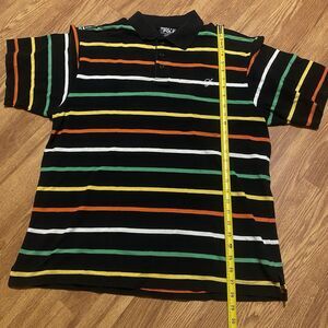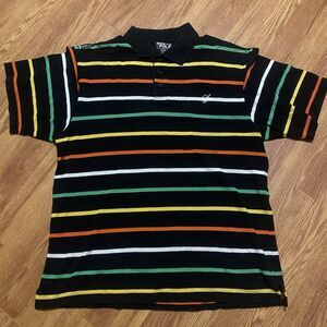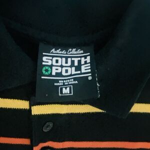 Southpole Polo Shirt Mens M Sriped Baggy Streetwear Hiphop Black S/S Y2K VTG