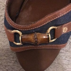 Step out in style with these chic brown and blue sandals. Perfect for any occasion, these shoes offer both comfort and elegance.