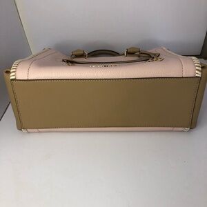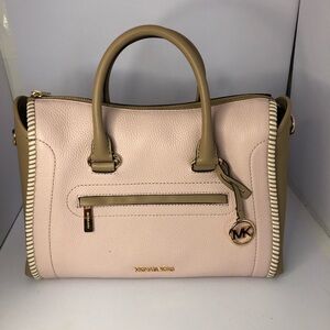 Michael Kors Carine Two Tone Pink Tan Women's Bag Leather Satchel Whip Stitch