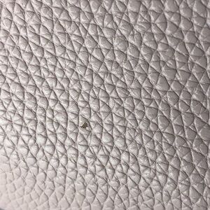 One Flaw- one small scratch in the front leather. Pictures don’t do the pink justice. Inside clean