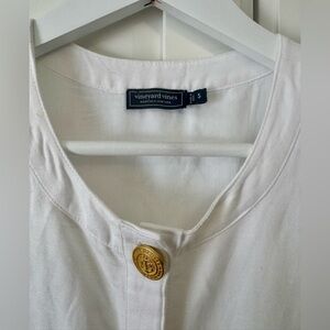 Vineyard Vines Women’s Linen Button Front Shift Dress White with Gold Accent