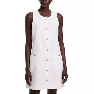 Sophisticated white linen dress by Vineyard Vines. Features distinctive gold accent buttons. Perfect for versatile styling. Fabric type