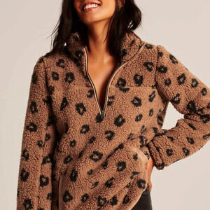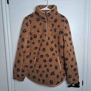 Abercrombie & Fitch Brown Cheetah Print Sherpa Half Zip Pullover Jacket Size XS