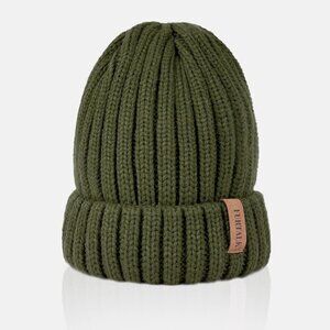 Women’s Green Winter Fleece-Lined Chunky Knit Beanie Snow Hat Cap