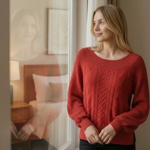 Willow & Root Red Cable-knit Sweater Size XL