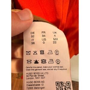 Step into effortless sophistication with this BOSS Orange Jawana blazer, tailored in a bold red hue for an elevated statement. The classic collared jacket features a cleverly hidden tie-waist that cinches the silhouette, offering both structure and femininity. Cut in a refined size US 0, its tailored shoulders and sleek lines create a polished profile that flatters your shape. Lightweight and versatile, it's perfect for transitioning from office to cocktails—style it over a dress or with tailored trousers for instant impact. A modern take on classic tailoring, this blazer blends bold color with timeless refinement.