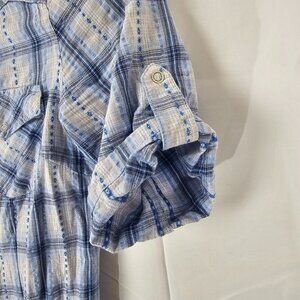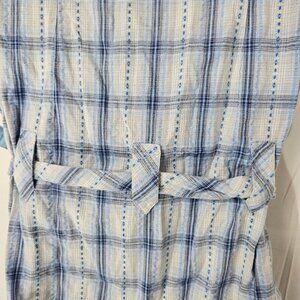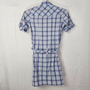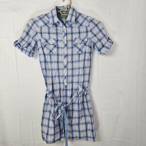 Horny Toad Shirt Dress Womens Small Blue Plaid Button Up Outdoor Belted Tie Knee