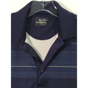 Ben Hogan Performance Navy Blue Striped Golf Polo Shirt Accent Lime Green Lines