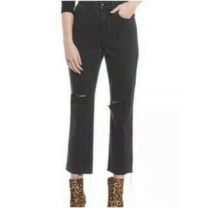 GIANNI BINI Jeans Denim Size 27 Stella Raw Hem Gray Black Distressed Crop NWT Cropped, High Rise, High Waisted, 100% Cotton