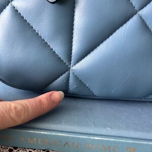 A couple tiny pin-sized punctures were noted from storage and are shown clearly in photos. The leather is not torn or spreading. Bag is otherwise pristine and unused. Priced accordingly.