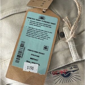 Faherty Stretch Terry 5-Pocket Pant Stone 34W/30L NWT