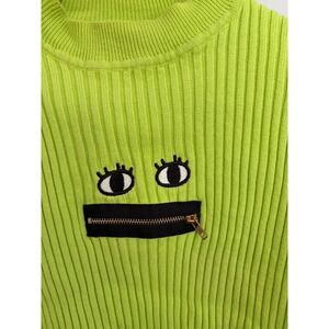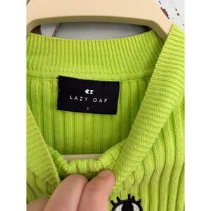 Lazy Oaf Zippy Mouth Ribbed Sweater Lime Green Size Small
