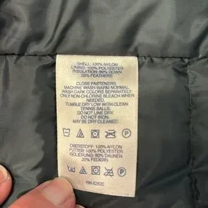 -shell is 100% nylon, lining is 100% polyester, insulation is 80% down and 20% feathers