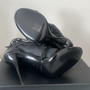 Saint Laurent Black Patent Cassandra Strappy High Heel Sandals 39