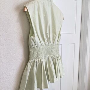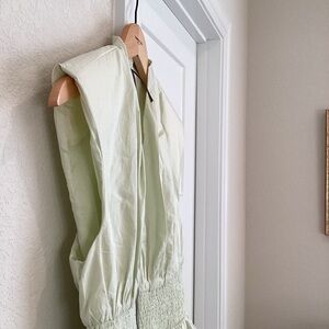 Anthropologie Tommie Cap-Sleeve Smocked Front Zip Blouse NEW Small Green Mint