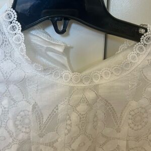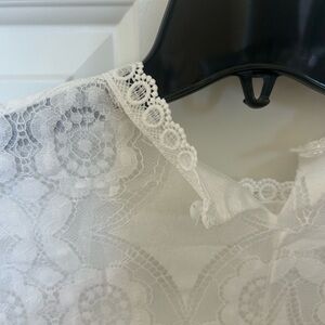This elegant white lace top is perfect for any occasion. Its intricate design adds a touch of sophistication to your wardrobe.