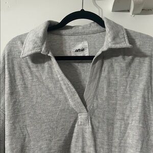 Stylish gray pullover sweater with a collar. Perfect for casual wear.