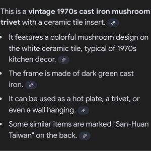 Vintage 1970s cast iron ceramic tile mushroom trivet