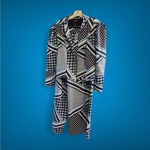 Navy, Blue and White Geometric Patterned Pants and Jacket