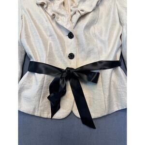 Adrianna Papell Jacket Champagne 3/4 Sleeve Ruffle Belt Elegant Blazer Coat WM 8