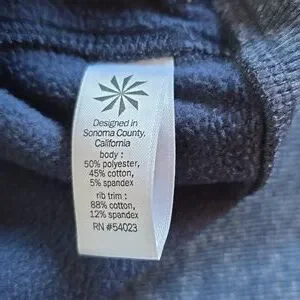 Body: 50% polyester, 45% cotton, 5% spandex