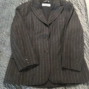 MaxMara Woman’s Gray 97% Virgin Wool Pinstriped 2 Button closure Blazer