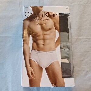 Calvin Klein Men’s Small Black / Grey 100% Cotton Stretch Hip Briefs 3 Pack