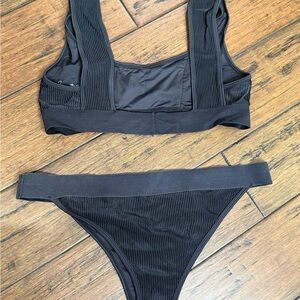 Frankie's Bikinis Black Ribbed Bikini Set Connor Top L Sara Bottom XL