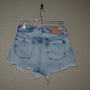 NWT $288 Sz 26 Moussy Vintage Blue Cotton Destroyed Frayed Cut Off Shor…