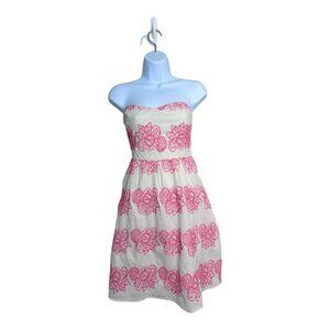 FLYING TOMATO Cream and Pink Embroidered Strapless Dress Size L