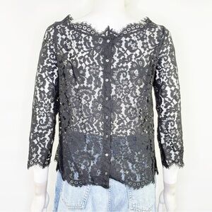 Joie Black Lace Sheer Blouse Top Size S Cocktail Party Whimsigoth Scalloped Hem