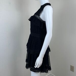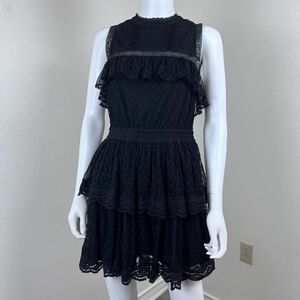 Misa Liat Point D'esprit Size XS Black Swiss Dot Lace Tiered NEW Mini Dress