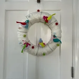 Brighten up any room with this colorful bird wreath. Bought last year and goes with all those cute birds Target released. Used inside so all clean in excellent condition.