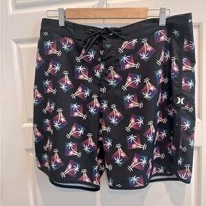 Hurley Swim Board Shorts Mens Size 34 Phantom Morro Palm Tree Boardshorts - 18”