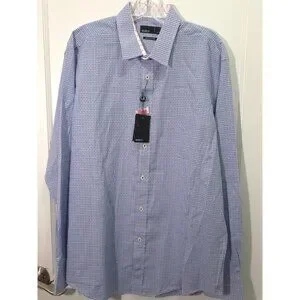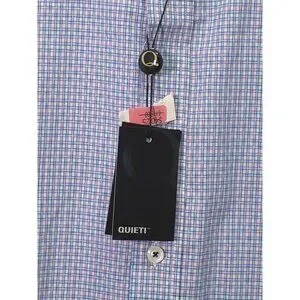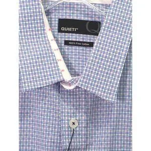 NWT Quieti Men's Large Button-Down Shirt Blue & Purple Checkered Pattern 100% Fi
