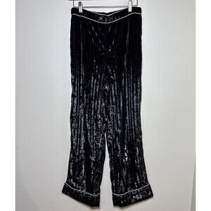 Victorias Secret Luxe Stripe Pajama Pants Womens M Black Velvet Sparkle Pull On Elastic Waist Flowy