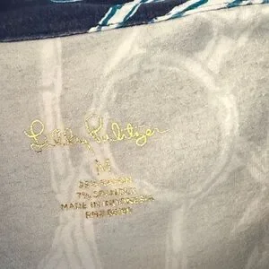 Elegant polo style dress with 3/4 length sleeve, button details in a blue and white pattern. Perfect for any casual occasion.